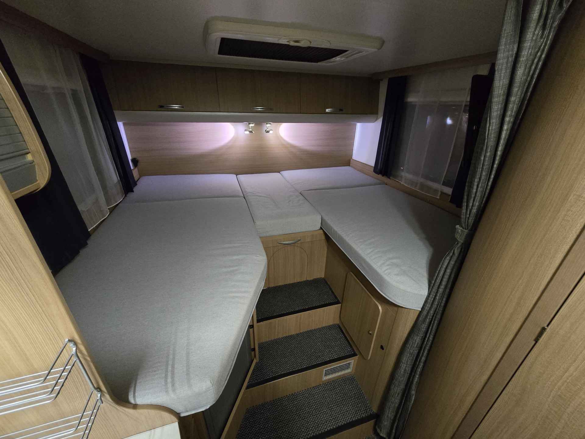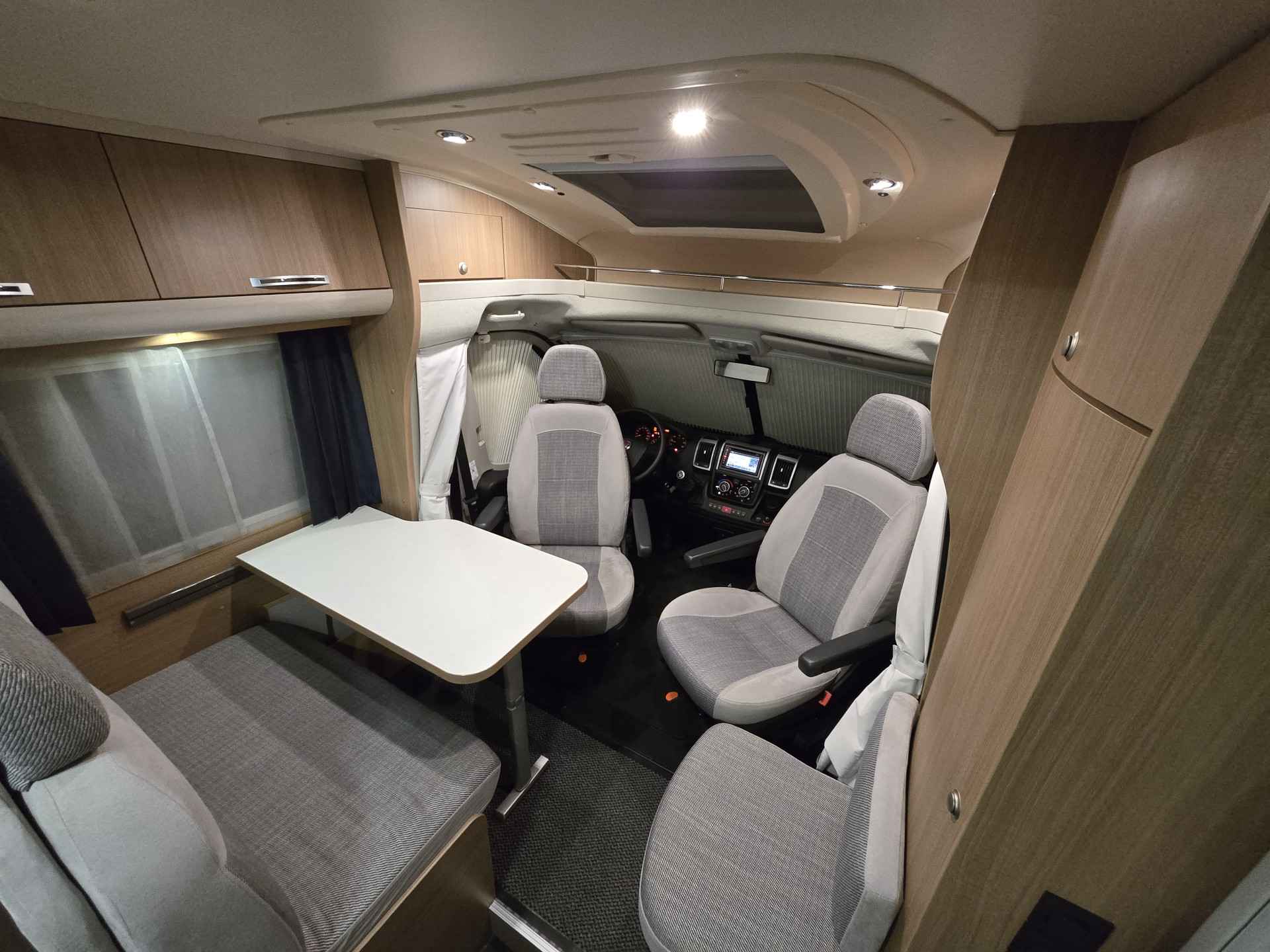 Deze zeer goed onderhouden camper, van eerste eigenaar, is voorzien van, elektrische ramen voor, achteruitrijcamera, airco cabine, cruise control, Bluetooth telefoon, boordcomputer, Pioneer navigatie en soundsystem met DAB radio, CD, USB Aux SD, touchscreen, LED sfeerverlichting, dagrijverlichting, parkeersensoren achter, achteruitrijcamera, spiegels elektrisch verstelbaar, TV, satellietontvanger, slaapplaatsen voor 4 personen: 2 aparte lengtebedden om te bouwen tot 1 groot 2 persoonsbed, 1 x 1persoonsbed bij de dinette, draaibare voorstoelen met extra beschermhoezen, Maxxfan, aparte douche d.m.v scharnierwand, toilet met wasbak, keuken met ruime koelkast met vriesvak, 2 pits kooktoestel op gas, wasbak, Truma verwarming en warmwaterboiler, schoon water tank, geïsoleerde en verwarmde afval water tank, ramen en deur voorzien van horrengaas en verduistering, 2 gasflesaansluitingen met crashsensor, 145 Ah AGM huishoudaccu, zonnepanelen, Schaudt elektroblock EBL 208 S G lader, Carbest 80 Watt 1000 W omvormer, 120 liter brandstoftank, elektrisch te openen panoramadak voor, buitendouche, grote garageruimte met opbergrek met 9 lades en een safe, reservewiel, Fiamma cassetteluifel, fietsendrager, 16 inch metalen velgen met all season banden en nog veel meer.