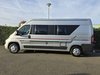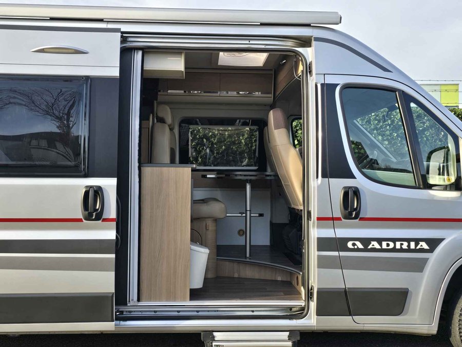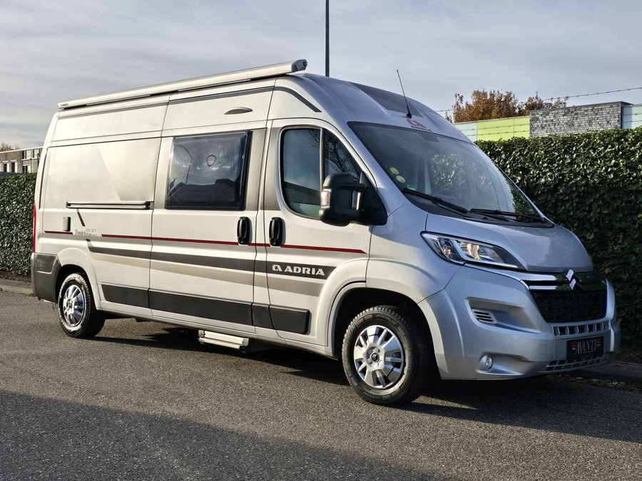 In topstaat verkerende, 2 persoons met 4 zitplaatsen, buscamper Adria Sun Living Lido S42 SL op Fiat Ducato basis met een sterke 2.0 l 163 pk dieselmotor, Euro 6, handmatige versnellingsbak, kleur grijs, bouwjaar 08-06-2017 met slechts 67.423 km.