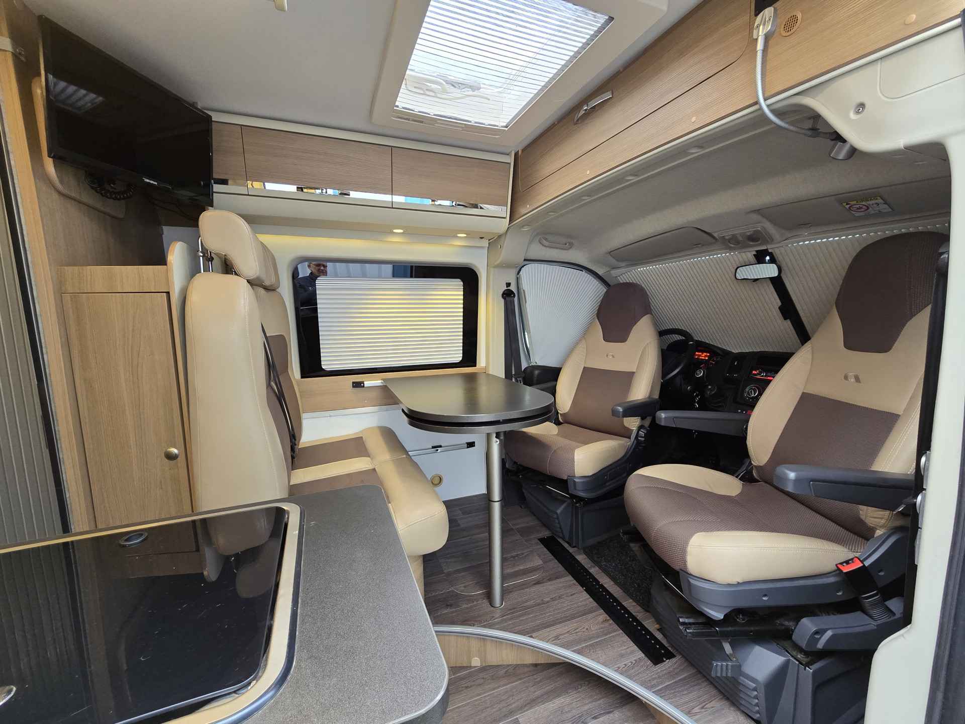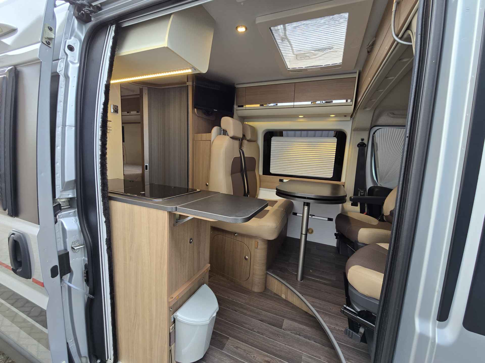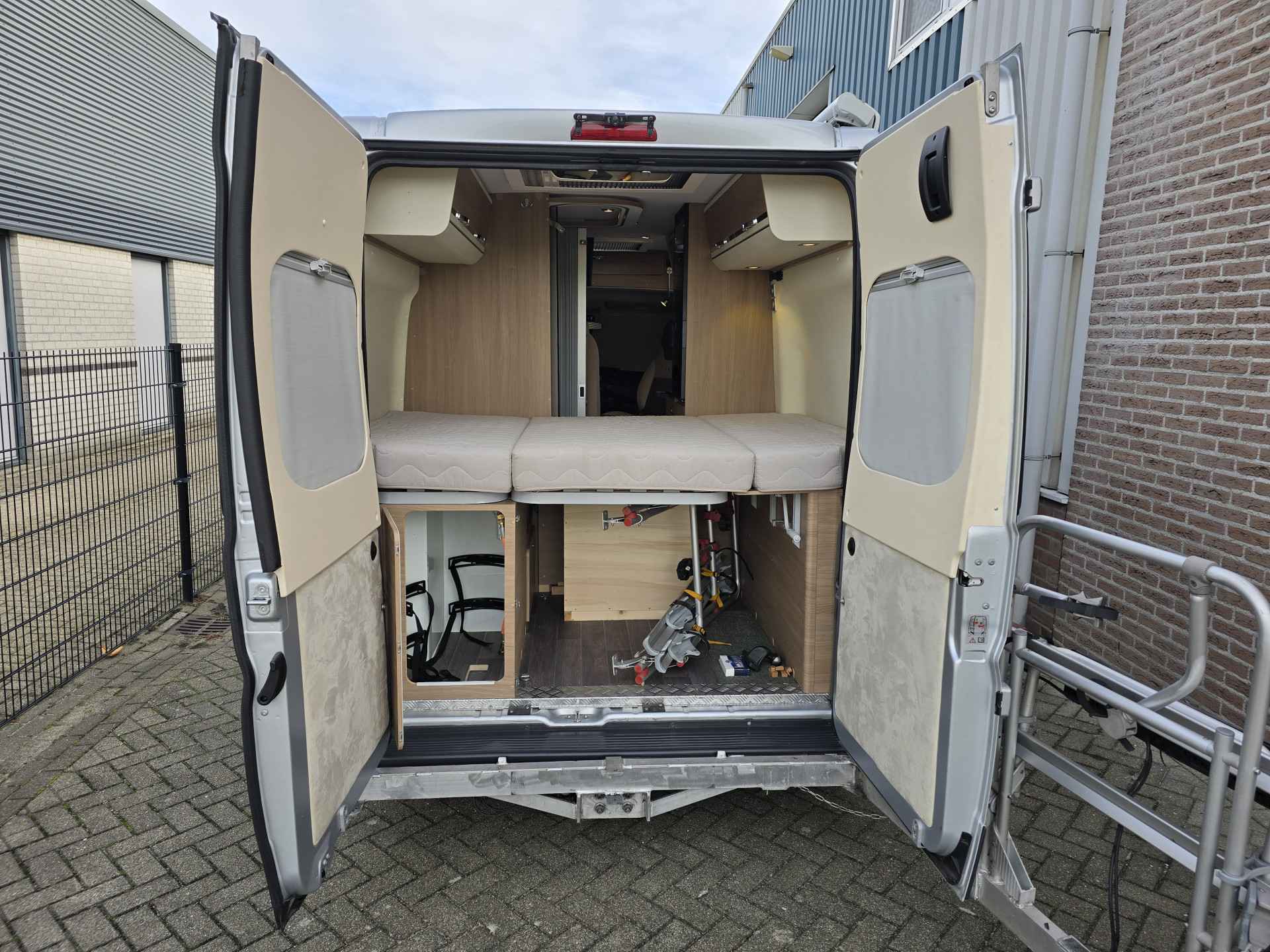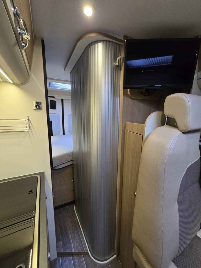 Deze zeer goed onderhouden camper, van eerste eigenaar, is voorzien van, elektrische ramen voor, achteruitrijcamera, airco cabine, cruise control, Bluetooth telefoon, boordcomputer, JVC navigatie en soundsystem met radio, CD, USB Aux SD, LED sfeerverlichting, dagrijverlichting, parkeersensoren achter, achteruitrijcamera, Bearlock, spiegels elektrisch verstelbaar, TV, satellietontvanger, slaapplaatsen voor 2 personen d.m.v dwarsbed, draaibare voorstoelen, aparte douche d.m.v rolwand, toilet met wasbak, keuken met ruime koelkast met vriesvak, 2 pits kooktoestel op gas, wasbak, Truma Combi (E) verwarming en warmwaterboiler, schoon water tank, geïsoleerde en verwarmde afval water tank, ramen en deur voorzien van horrengaas en verduistering, 2 gasflesaansluitingen met crashsensor, 145 Ah AGM huishoudaccu, zonnepanelen, Schaudt elektroblock EBL 208 S G lader, elektrische instaptrede, Fiamma cassetteluifel, 2 fietsendragers voor 2 fietsen elk, 15 inch metalen velgen met goede banden ( waarvan 2 nieuwe) en nog veel meer.