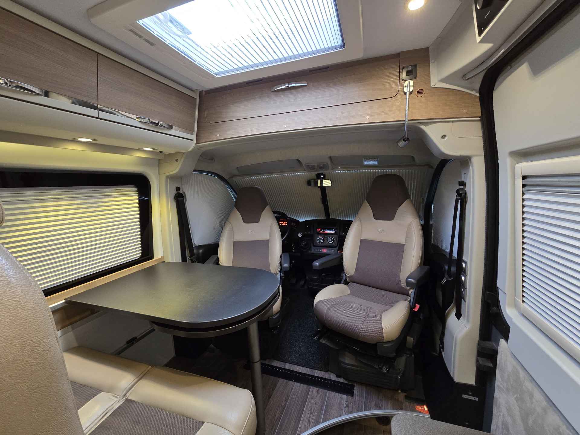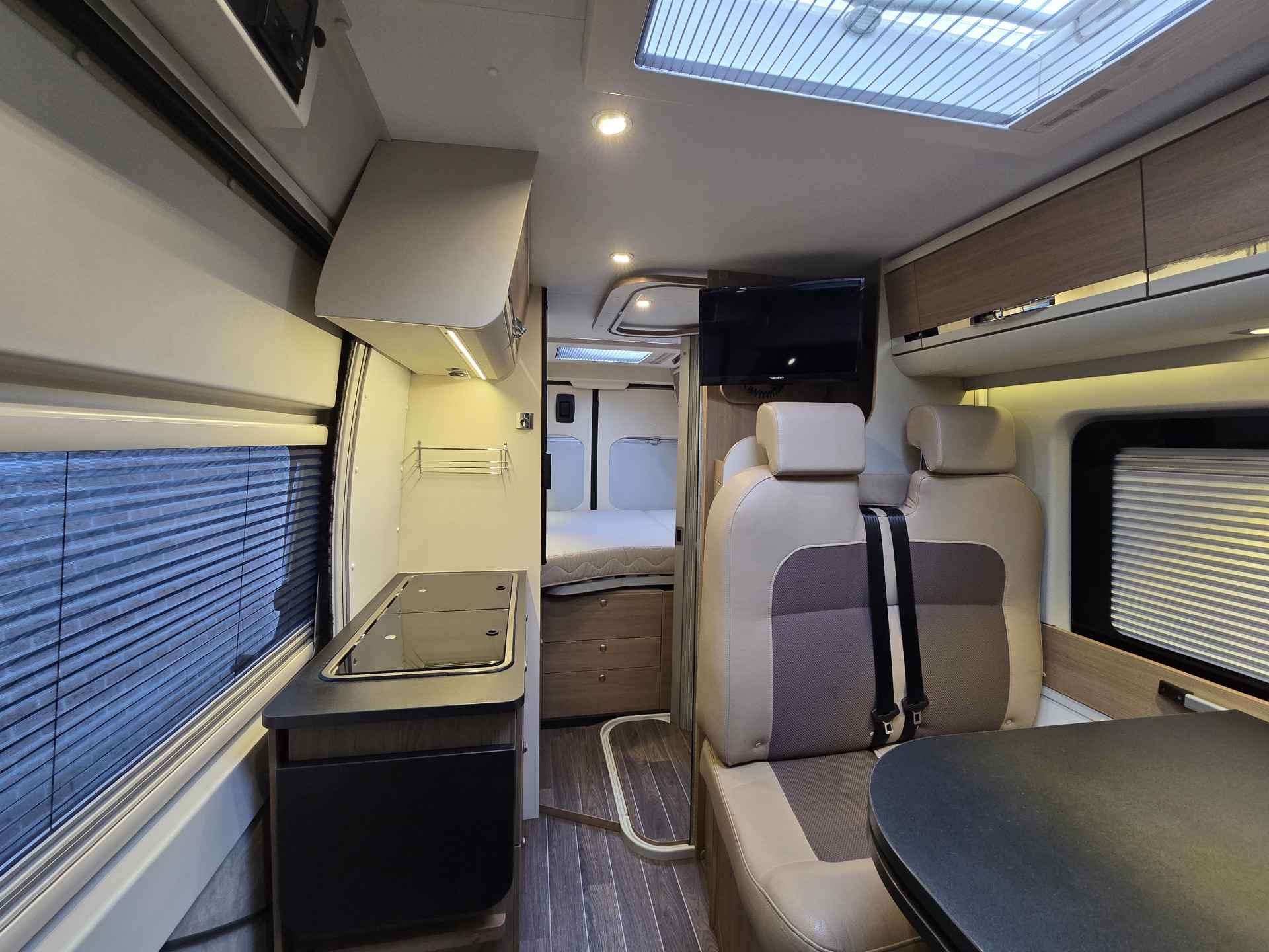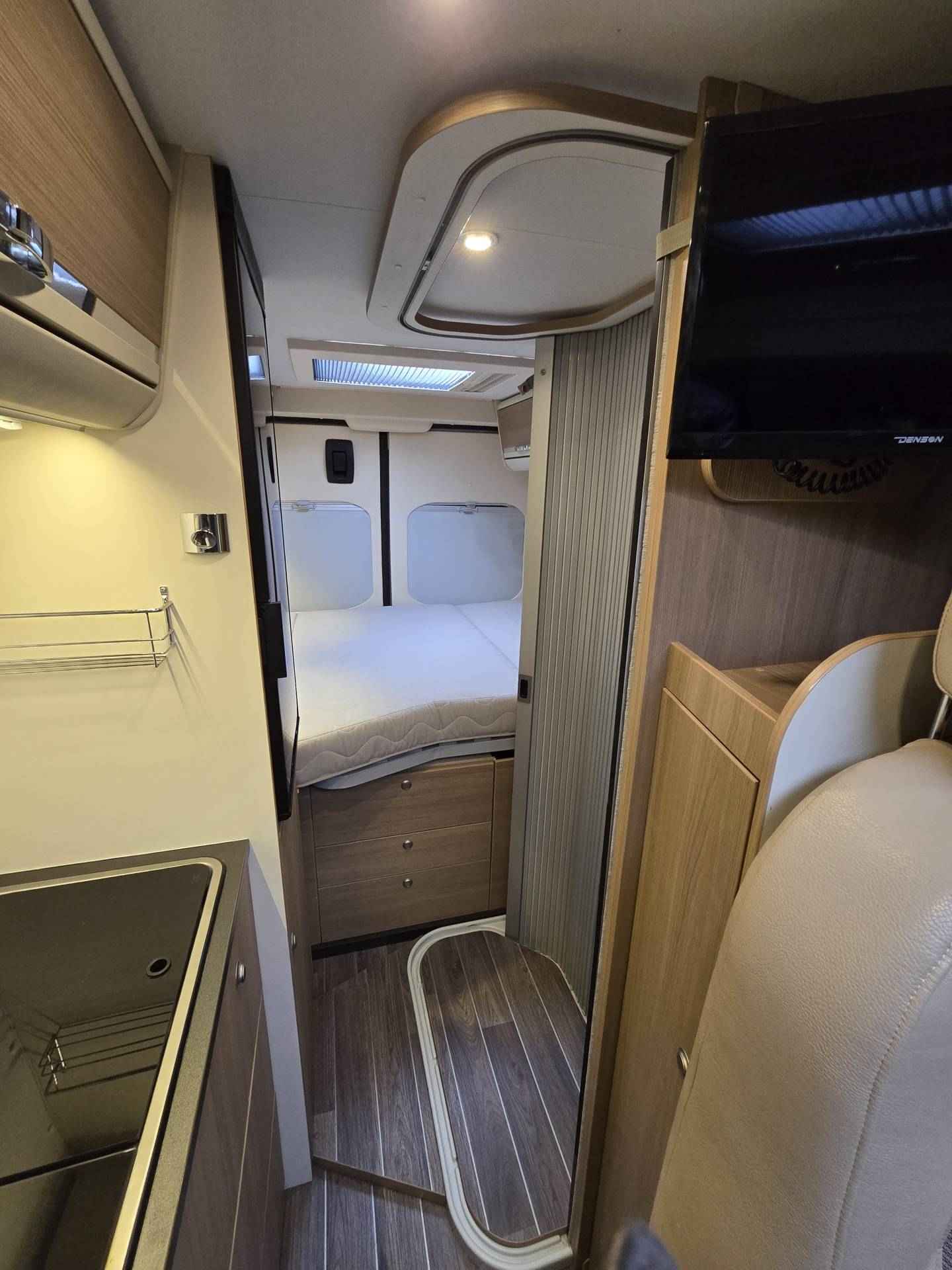 Deze zeer goed onderhouden camper, van eerste eigenaar, is voorzien van, elektrische ramen voor, achteruitrijcamera, airco cabine, cruise control, Bluetooth telefoon, boordcomputer, JVC navigatie en soundsystem met radio, CD, USB Aux SD, LED sfeerverlichting, dagrijverlichting, parkeersensoren achter, achteruitrijcamera, Bearlock, spiegels elektrisch verstelbaar, TV, satellietontvanger, slaapplaatsen voor 2 personen d.m.v dwarsbed, draaibare voorstoelen, aparte douche d.m.v rolwand, toilet met wasbak, keuken met ruime koelkast met vriesvak, 2 pits kooktoestel op gas, wasbak, Truma Combi (E) verwarming en warmwaterboiler, schoon water tank, geïsoleerde en verwarmde afval water tank, ramen en deur voorzien van horrengaas en verduistering, 2 gasflesaansluitingen met crashsensor, 145 Ah AGM huishoudaccu, zonnepanelen, Schaudt elektroblock EBL 208 S G lader, elektrische instaptrede, Fiamma cassetteluifel, 2 fietsendragers voor 2 fietsen elk, 15 inch metalen velgen met goede banden ( waarvan 2 nieuwe) en nog veel meer.