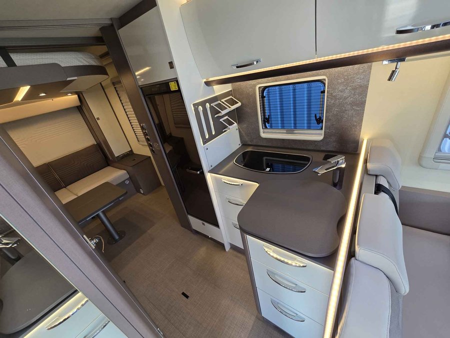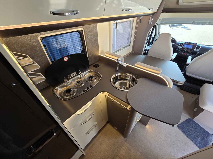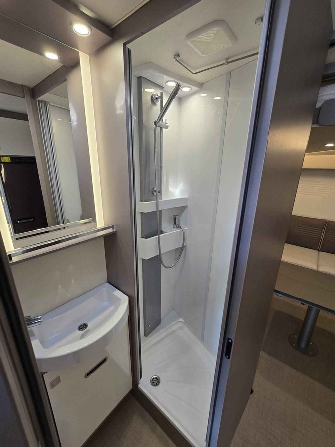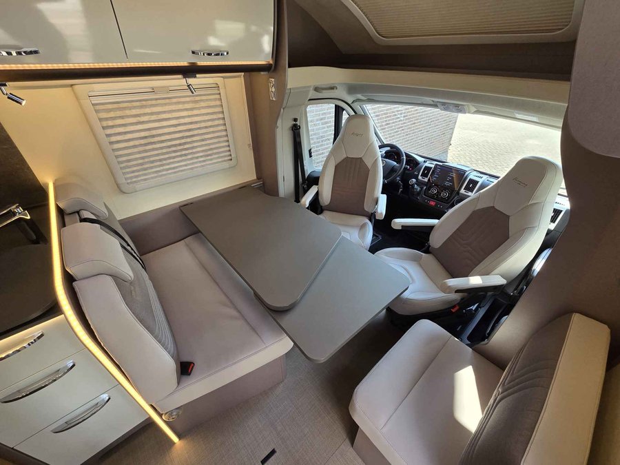 Deze zeer goed onderhouden camper is voorzien van; alarmsysteem van Vodafone met ultrasone sensoren, stoelverwarming, elektrische ramen voor, airco cabine, extra tapijt in de cabine en in de leefruimte (nieuw dus ongebruikt), dubbel verwarmde Thermo-vloer functionele dubbele bodem met verwarmde opbergvakken, extra bodembescherming, Truma verwarming in de leefruimte, cruise control met snelheidsbegrenzer, Garmin navigatie VIEO RV1052 met VIEO RV52 dock en Apple Car Play, Android Auto, WiFi , DAB radio, Bluetooth telefoon, boordcomputer, USB Aux SD, LED sfeerverlichting, Full-LED koplampen, dagrijverlichting, spiegels elektrisch verstel- en verwarmbaar, LTE router voor razendsnel internet, GFK dak, Schaudt laadbooster 40A , Zonnesysteem 100W met MPP zonneregelaar (laadt carrosserie en startaccu), bestuurbaar via de app, 150Ah lifepo4 huishoud accu met BMS met Bluetooth onder de stoel, Victron Lithium lader, slaapplaatsen voor 2 personen d.m.v. een uniek Queens hefbed waardoor een ruime zithoek ontstaat met grote ramen voor een nog ruimtelijker effect, draaibare voorstoelen, aparte ruime douche d.m.v schuifwand, wasbak, soft close kastjes en lades, keuken met ruime koelkast en vriesvak, 2 pits kooktoestel op gas, roestvrijstalen hoogglans wasbak, warmwaterboiler, Maxxfan, verwarmde schoon water tank 120 l, verwarmde afval water tank 90 l, ramen en deur voorzien van horrengaas en verduistering, 2 gasflesaansluitingen met Truma Duo Control, 3G gasalarm, garageruimte met 2 deuren, elektrische trede, uitklapbare steunen achter, winter thermokap voor voorruit, 16 inch lichtmetalen velgen en nog veel meer. De ideale camper om ook in de winter mee op pad te gaan.