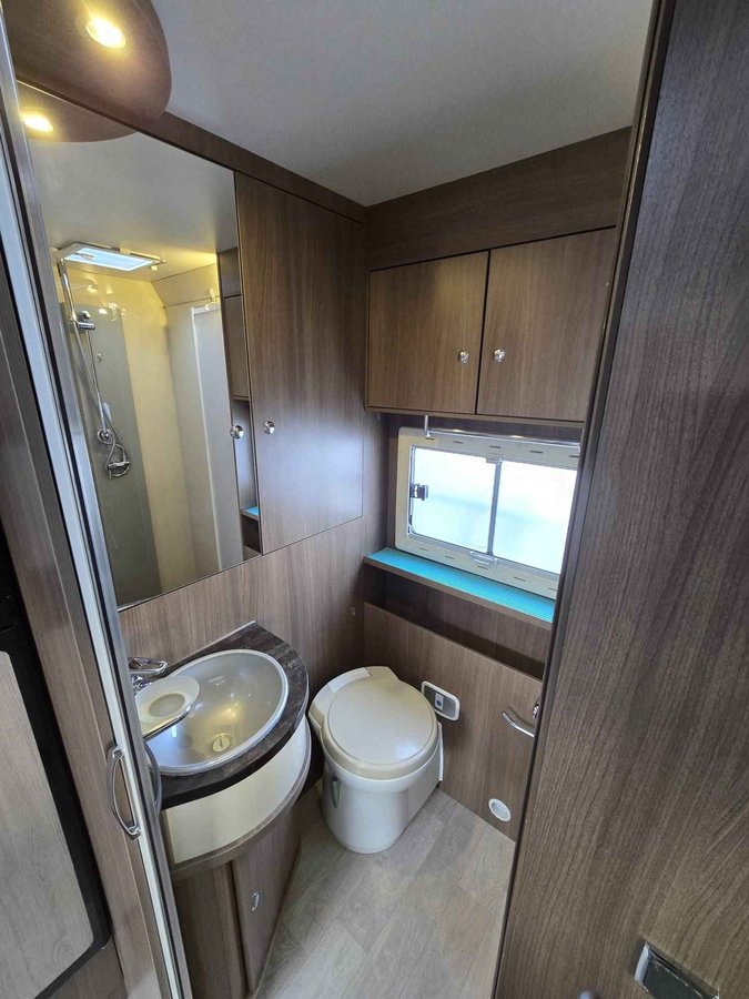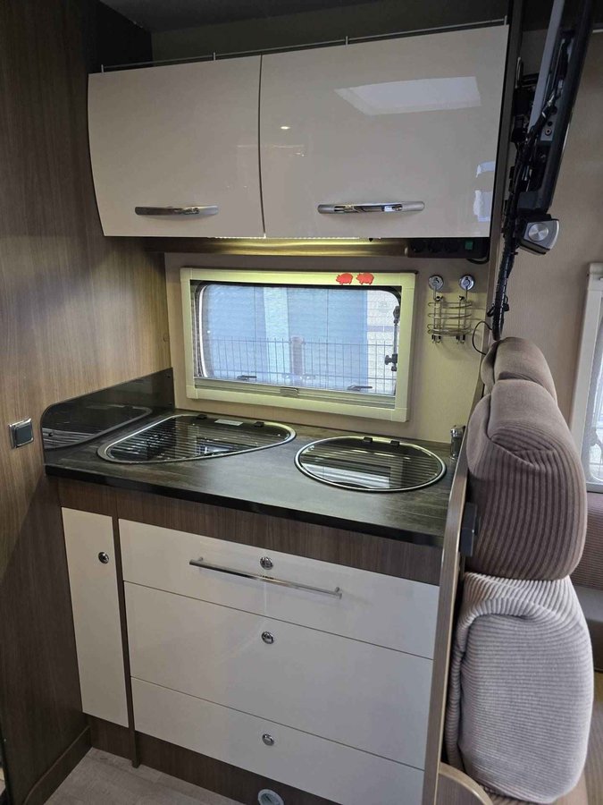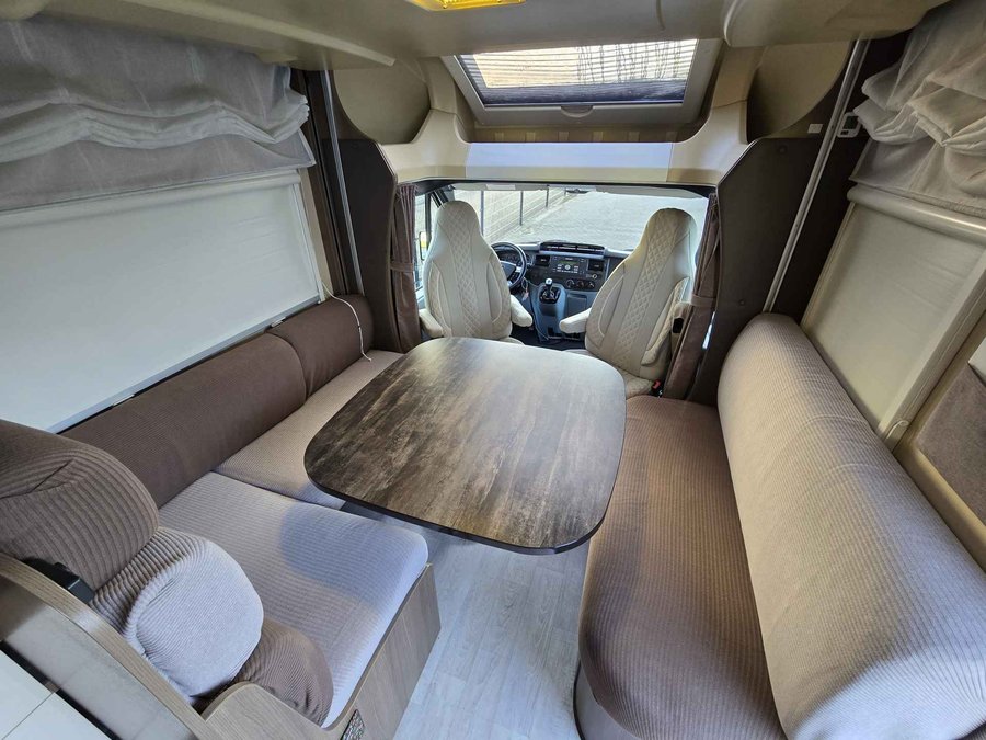 Deze goed onderhouden camper is voorzien van elektrische ramen voor, airco cabine, Truma verwarming in de leefruimte, ruime hangkast, cruise control, Bluetooth telefoon, boordcomputer, multifunctioneel stuurwiel, sfeerverlichting, dagrijverlichting, spiegels elektrisch verstelbaar, TV, satellietontvanger, Caratec Soundbar, slaapplaatsen voor 4 personen: 2 persoons hefbed en een 2 persoonsbed van de dinette, draaibare voorstoelen, douche en toilet met wasbak, keuken met ruime koelkast en vriesvak, 3 pits kooktoestel op gas, wasbak, Truma warmwaterboiler, vloerverwarming, standverwarming, schoon water tank en afval water tank, ramen en deur voorzien van horrengaas en verduistering, 2 gasflesaansluitingen, Flamma cassetteluifel, GFK dak en wanden, fietsendrager voor 2 fietsen met uitbreidingsmogelijkheid naar 3 fietsen, 16 inch zomerbanden en een extra set winterbanden beide met stalen velgen en nog veel meer.