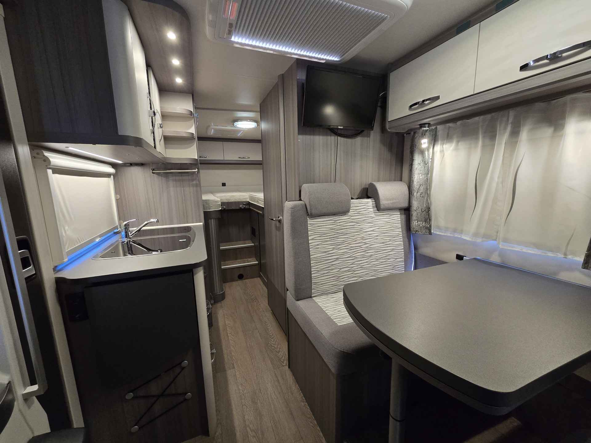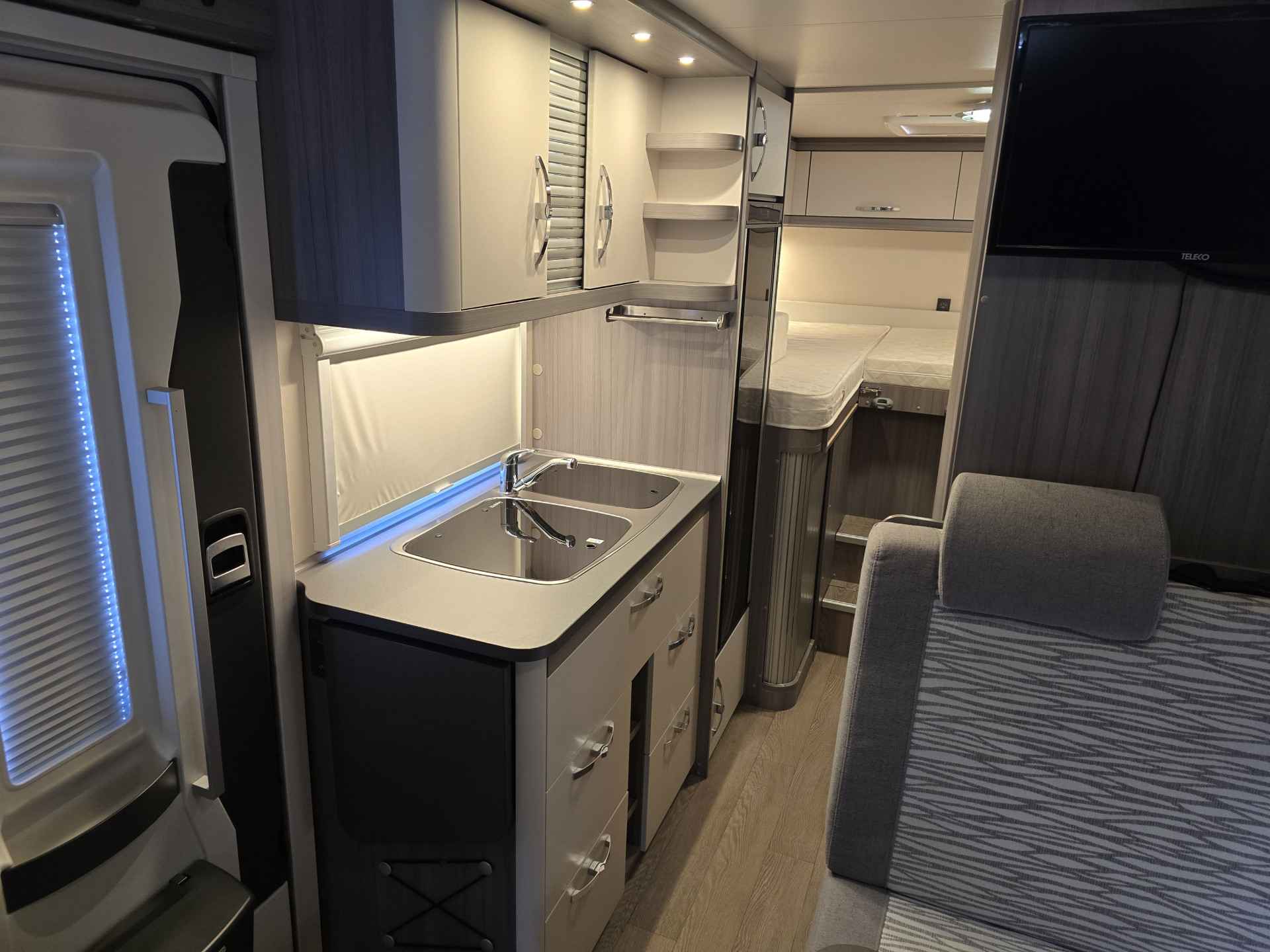 Deze zeer goed onderhouden camper is voorzien van, elektrische ramen voor, achteruitrijcamera, airco cabine, Truma verwarming in de leefruimte, cruise control, Bluetooth telefoon, boordcomputer, Pioneer navigatie, USB Aux SD, Pioneer soundsystem met DAB radio, Apple Car Play, Android Auto, LED sfeerverlichting, dagrijverlichting, spiegels elektrisch verstelbaar, TV, satellietontvanger, alarm, slaapplaatsen voor 2 personen: 2 aparte lengtebedden om te bouwen tot grote ligweide, Maxxfan ventilator in slaapgedeelte, draaibare voorstoelen, aparte douche d.m.v scharnierwand, toilet met wasbak, Clesana C1 waterloos toilet, keuken met ruime koelkast en vriesvak, 3 pits kooktoestel op gas, wasbak, Truma warmwaterboiler, schoon water tank, afval water tank, ramen en deur voorzien van horrengaas en verduistering, 2 gasflesaansluitingen, zonnepaneel, grote garageruimte, Thule cassetteluifel, elektrische trede, SMV luchtvering, 16 inch lichtmetalen velgen met all season banden en nog veel meer.