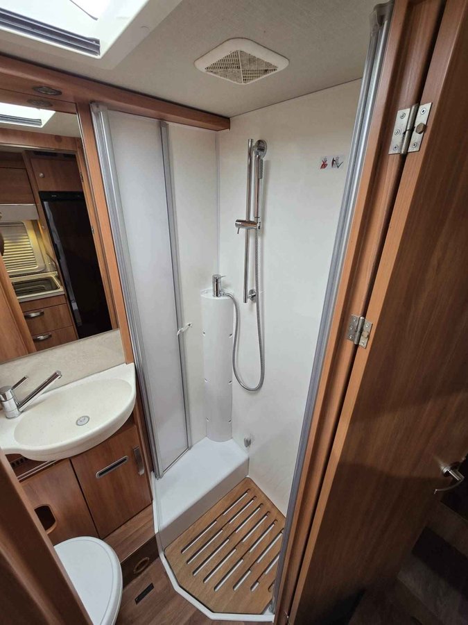 Deze zeer goed onderhouden camper is voorzien van, elektrische ramen voor, achteruitrijcamera, airco cabine, Truma verwarming in de leefruimte, ruime hangkast, cruise control, Bluetooth telefoon, boordcomputer, Zenec navigatie en soundsystem met DAB radio, sfeerverlichting, dagrijverlichting, spiegels elektrisch verstelbaar, TV, satelietontvanger, slaapplaatsen voor 4 personen: 2 aparte lengtebedden en een 2 persoons van de dinette, draaibare voorstoelen, douche en toilet met wasbak, keuken met ruime koelkast en vriesvak, 3 pits kooktoestel op gas, wasbak, Truma warmwaterboiler, vloerverwarming, verwarmde schoon water tank en afval water tank, ramen en deur voorzien van horrengaas en verduistering, omnistep, 2 gasflesaansluitingen met Truma duo control, buiten gas aansluiting, enkele licht hagel deukjes op het dak, zonnepaneel, grote garageruimte, Thule cassetteluifel, fietsendrager voor 2 fietsen in de garage, 15 inch lichtmetalen velgen en nog veel meer.